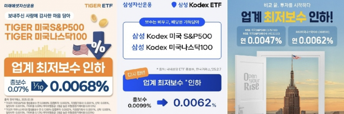 결론부터, 2025.07.31일 기준으로 인기있는 국내상장 S&P500 추종 ETF들의 총 보수는 아래와 같다.