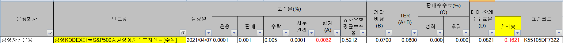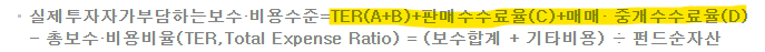 여기서 좀 더 아래를 보면, 총 비용은 TER(A+B)+판매수수료율(C)+매매/중개수수료율(D) 이다. 하지만, 총 보수는 A 이기 때문에, B, C, D 만큼의 비용이 추가로 계산되어야 하는 것이다.