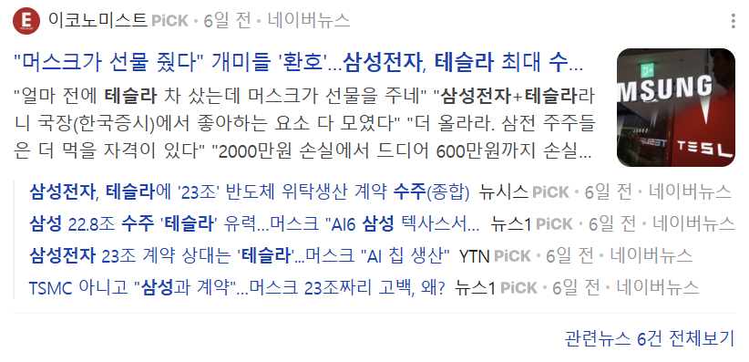 일론 머스크는 이번에 22조를 계약했지만, 추가 대형 계약 가능성도 남겨두었다. 이것이 삼성전자의 주가를 더 올리게 되었다고 생각한다.