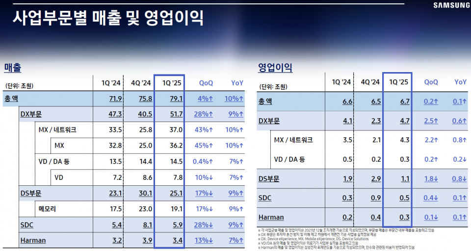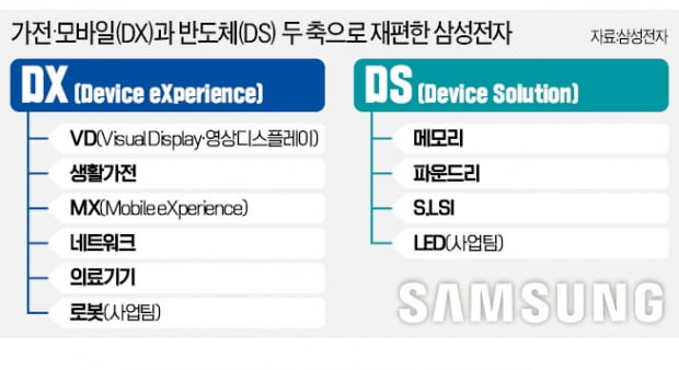 삼성전자는 크게 세트 부문(스마트폰 등)과 반도체 부문으로 나뉘어져 있다.