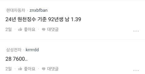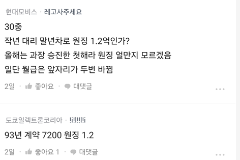 | 현대자동차 | 32 (94년생) | 1억 1000만 |